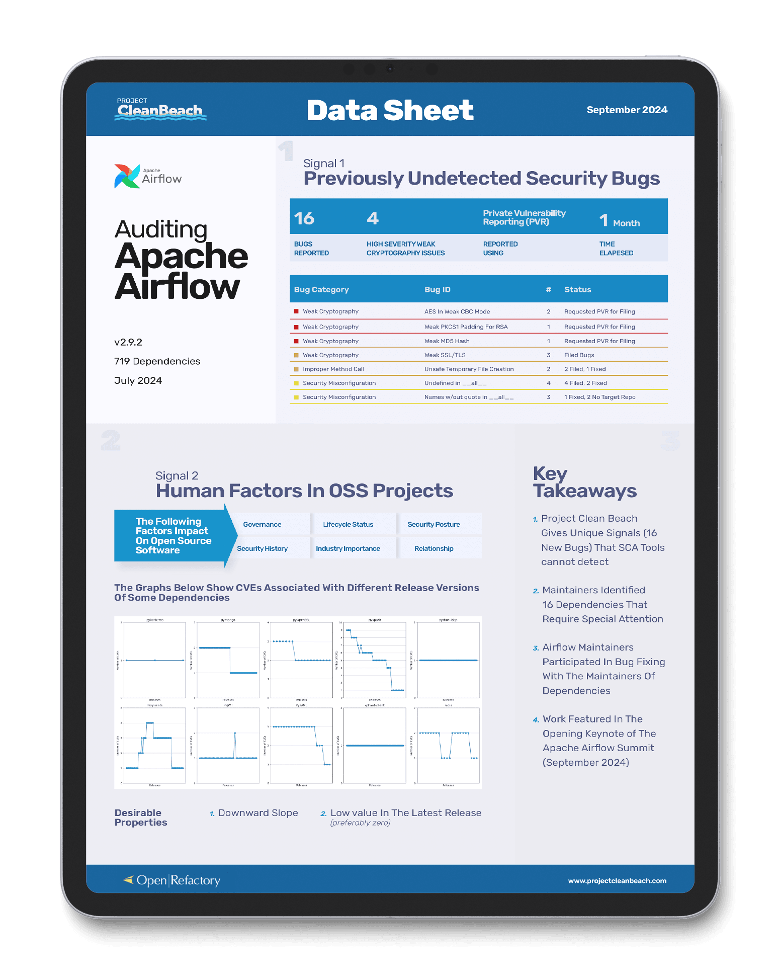 Auditing open-source software like Apache Airflow demands precision and collaboration. Project Clean Beach takes the lead in uncovering hidden vulnerabilities that standard tools overlook. This data sheet, "Auditing Apache Airflow," highlights groundbreaking discoveries and industry-leading practices in security auditing.
